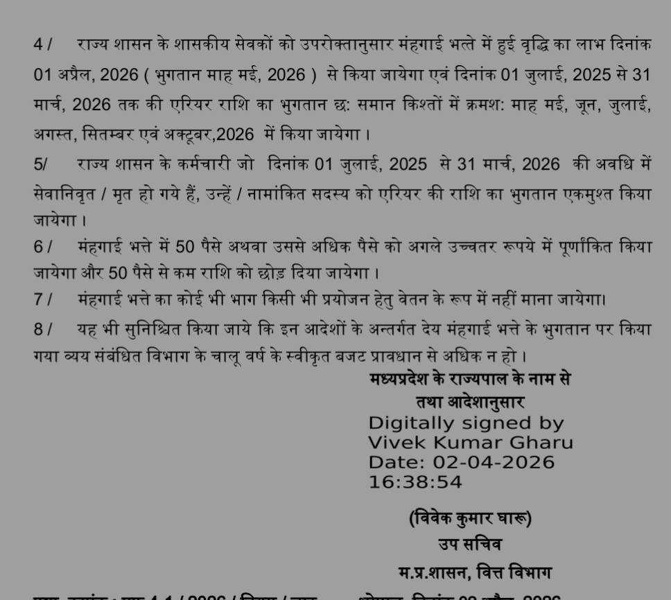 मध्यप्रदेश के लाखों कर्मचारियों और पेंशनर्स के लिए राहत की खबर है। सरकार के फैसले के बाद अब उनकी मासिक आय में सीधा इजाफा दिखेगा।