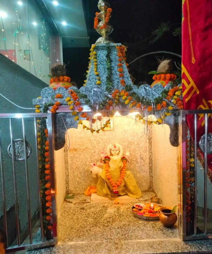 सायंकाल प्राण-प्रतिष्ठा, मूर्ति स्थापना, हवन-पूजन और महाआरती का आयोजन हुआ।