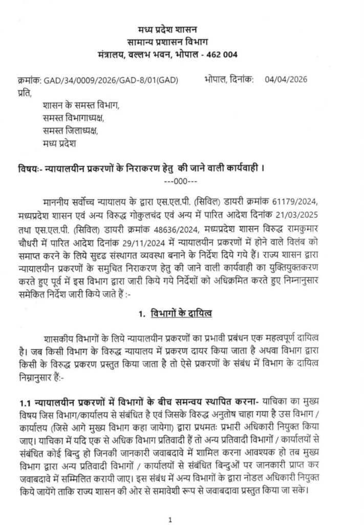 अवमानना और लंबित मामलों को लेकर बढ़ती सख्ती के बीच सामान्य प्रशासन विभाग (GAD) ने हाल ही में एक परिपत्र जारी किया। जिसमें अदालतों में समय पर जवाब देने और आदेशों का पालन सुनिश्चित करने की नसीहत दी गई।
