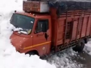 . एक पिकअप का शीशा टूटने से अंदर तक बर्फ भर गई।